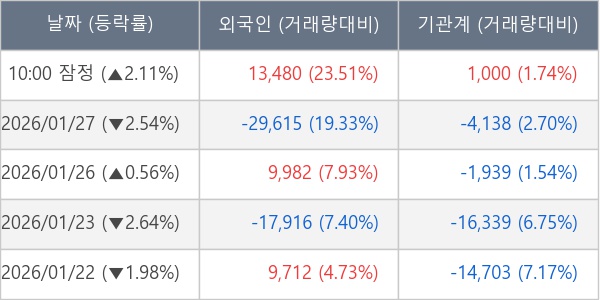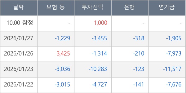 [표] 주요 기관별 순매매량 (단위 주)