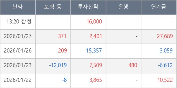 ※ 사모펀드 등 일부 기관의 순매매량은 표시되지 않음