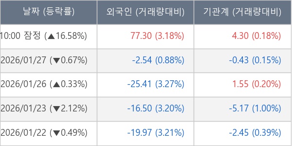 [장중수급포착] 대한광통신, 외국인/기관 동시 순매수… 주가 +16.58%