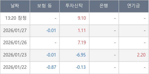 [표] 주요 기관별 순매매량 (단위 만주)