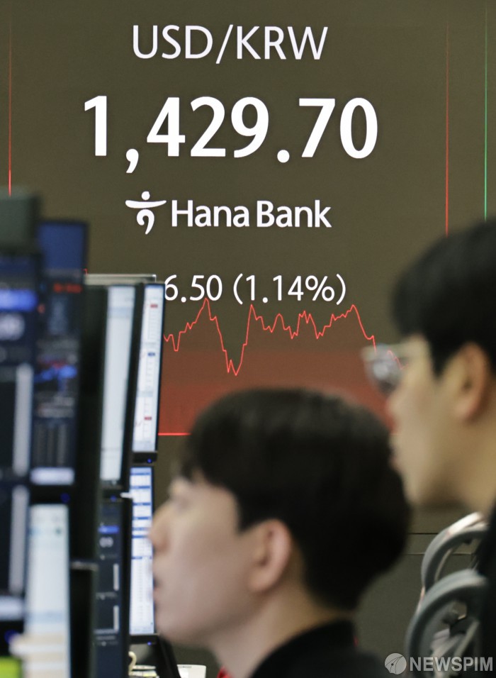 [서울=뉴스핌] 양윤모 기자 = 28일 오전 서울외환시장에서 달러/원 환율이 전장 대비 16.50원 하락한 1429.70원에 거래되는 가운데, 서울 중구 하나은행본점 딜링룸에서 직원들이 업무를 보고 있다. 코스피는 전장 종가보다 56.17 포인트(1.10%) 상승하며 5141.02로 거래되고 있다. 2026.01.28 yym58@newspim.com