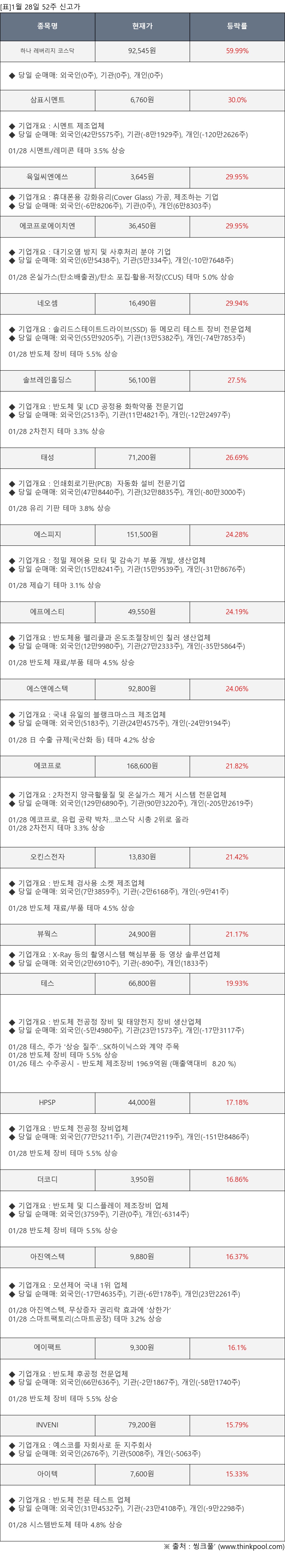 ※ 관련 종목: 하나 레버리지 코스닥, 삼표시멘트, 육일씨엔에쓰, 에코프로에이치엔, 네오셈, 솔브레인홀딩스, 태성, 에스피지, 에프에스티, 에스앤에스텍, 에코프로, 오킨스전자, 뷰웍스, 테스, HPSP, 더코디, 아진엑스텍, 에이팩트, INVENI, 아이텍