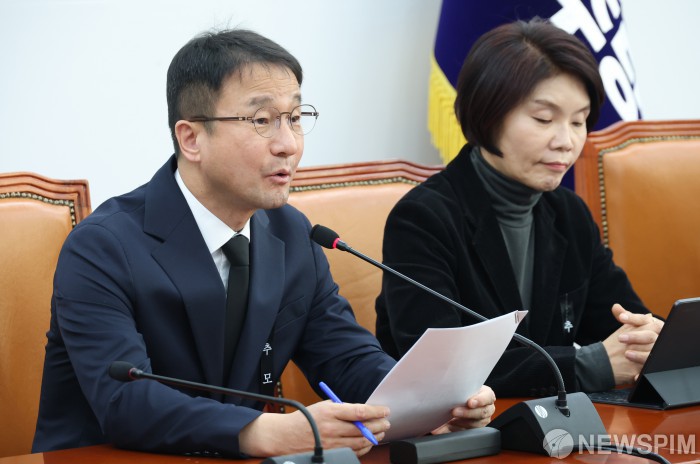 [서울=뉴스핌] 정일구 기자 = 한병도 더불어민주당 원내대표가 29일 오전 서울 여의도 국회에서 열린 정책조정회의에서 모두발언을 하고 있다. 2026.01.29 mironj19@newspim.com