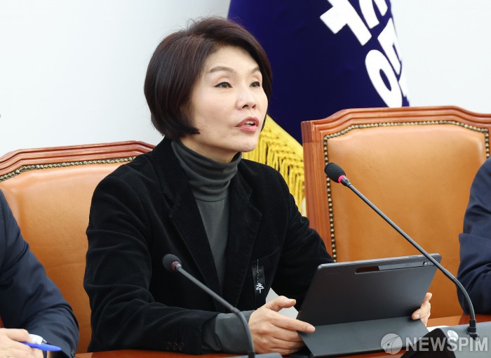 [서울=뉴스핌] 정일구 기자 = 한정애 더불어민주당 정책위의장이 29일 오전 서울 여의도 국회에서 열린 정책조정회의에서 모두발언을 하고 있다. 2026.01.29 mironj19@newspim.com