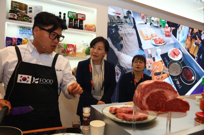 한국은 24개 업체가 참여한 통합 한국관을 구성해 장류, 음료, 스낵류 가공식품과 딸기, 포도, 키위 등 신선 농산물을 앞세워 바이어 상담과 홍보 활동을 이어갔다.