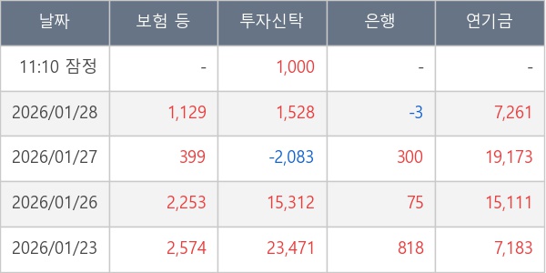 ※ 사모펀드 등 일부 기관의 순매매량은 표시되지 않음