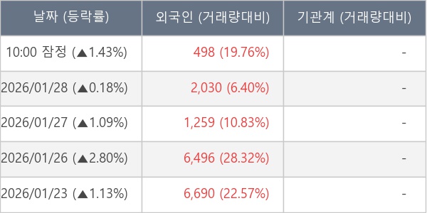 [표] 외국인ㆍ기관 순매매량 (단위 주)