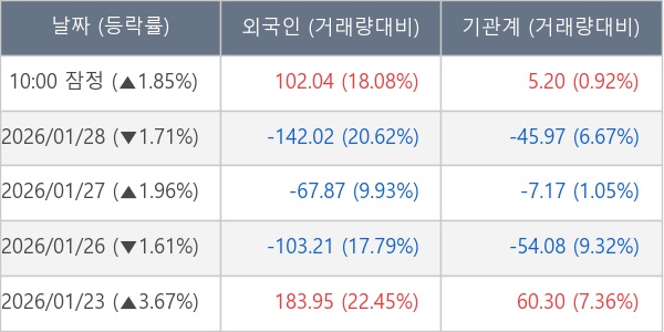 [표] 주요 기관별 순매매량 (단위 만주)