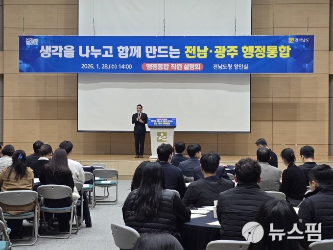 28일 도청 왕인실에서 열린 설명회에는 본청 직원 150여 명이 참석했다. 행사는 강위원 부지사의 행정통합 추진 상황 설명, 총무과의 인사·조직 관련 안내, 질의응답 순으로 짜였다.