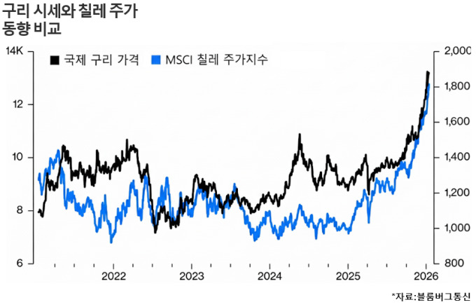 신흥국 시장에는 원자재 랠리의 직접적 수혜국이 다수 포진해 있다. 세계 최대 구리 생산국인 칠레의 증시는 구리 가격과 궤를 같이하고 남아프리카공화국은 금 시세와 동조화 현상을 보여왔다. 브라질 주식시장은 철광석·원유 시세와의 연관성이 짙다.