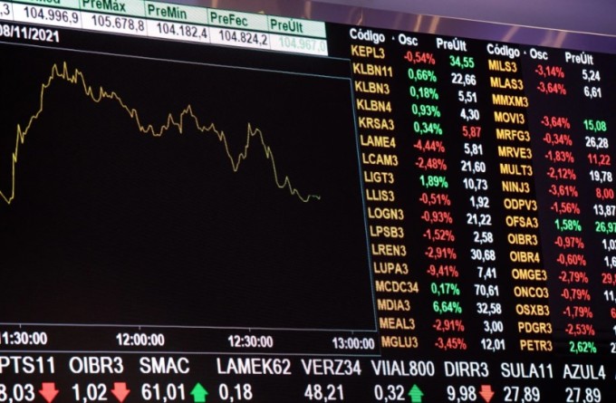 브라질 상파울루 B3 증권거래소 전광판에 표시된 종목별 주가 흐름 [사진=블룸버그통신]