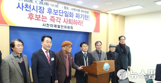 [사천=뉴스핌] 최민두 기자 = 경남 사천시장 후보 단일화를 추진해온 사천미래발전위원회가 단일화 합의를 파기한 입후보예정자를 강하게 비판하며 즉각적인 후보 사퇴를 촉구하고 나섰다.
