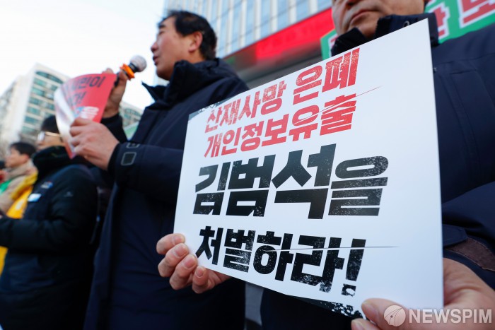 [서울=뉴스핌] 류기찬 기자 = 공공운수노조가 30일 오전 서울 송파구 쿠팡 본사 앞에서 쿠팡 규탄 분노의 시민대행진 기자회견을 열고 있다. 2026.01.30 ryuchan0925@newspim.com