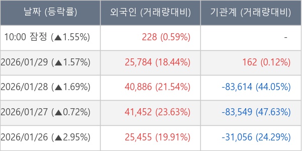 [표] 외국인ㆍ기관 순매매량 (단위 주)