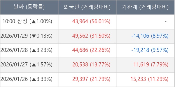 [표] 외국인ㆍ기관 순매매량 (단위 주)