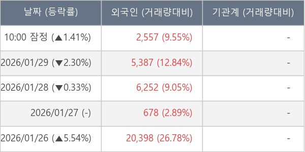 [표] 외국인ㆍ기관 순매매량 (단위 주)