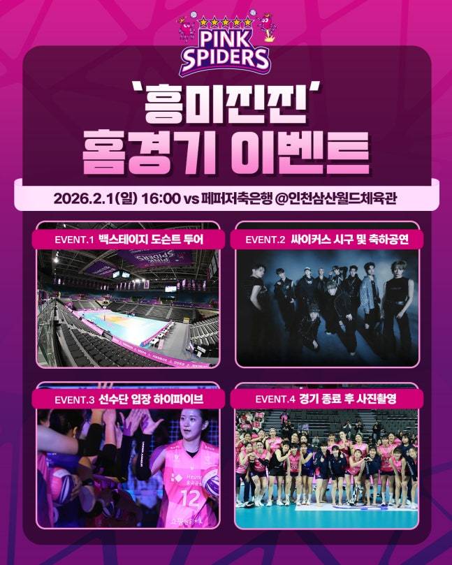 흥국생명은 2월 한 달간 팬 체험 프로그램을 강화하는 월간 테마 '흥미진진'을 운영하며, 홈경기마다 다양한 참여형 이벤트를 순차적으로 선보일 계획이다.