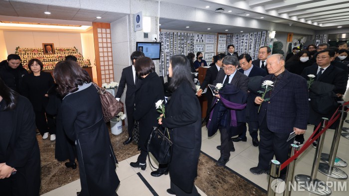 [서울=뉴스핌] 사진공동취재단 = 30일 오후 서울 종로구 서울대학교병원 장례식장에 마련된 고(故) 이해찬 전 국무총리의 빈소를 찾은 시민들이 조문을 하기 위해 대기하고 있다. 2026.01.30 photo@newspim.com
