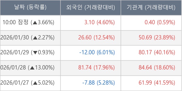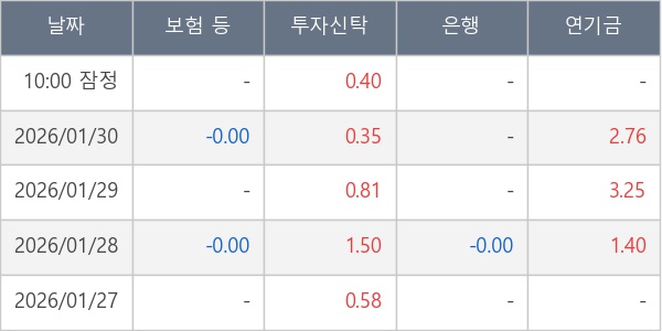 [표] 주요 기관별 순매매량 (단위 만주)