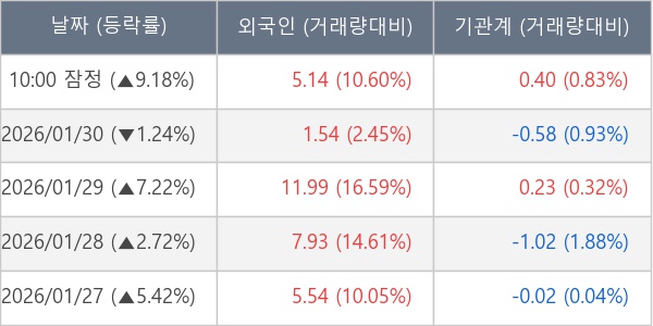 [표] 외국인ㆍ기관 순매매량 (단위 만주)