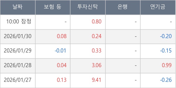 [표] 주요 기관별 순매매량 (단위 만주)