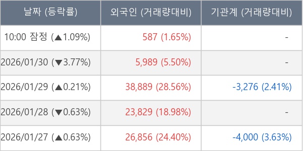 [표] 외국인ㆍ기관 순매매량 (단위 주)
