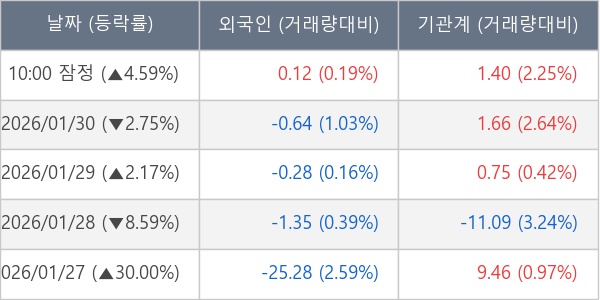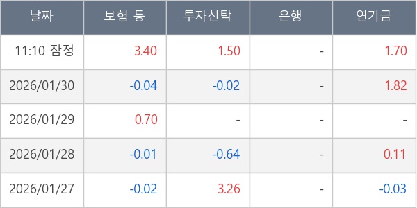 [표] 주요 기관별 순매매량 (단위 만주)