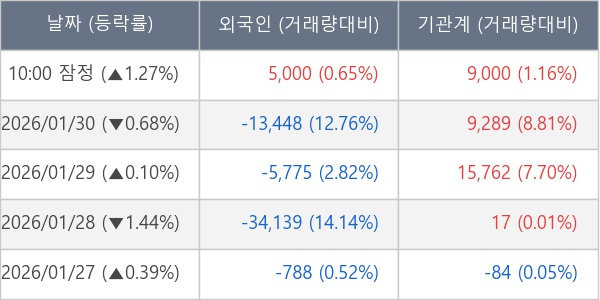 [표] 외국인ㆍ기관 순매매량 (단위 주)