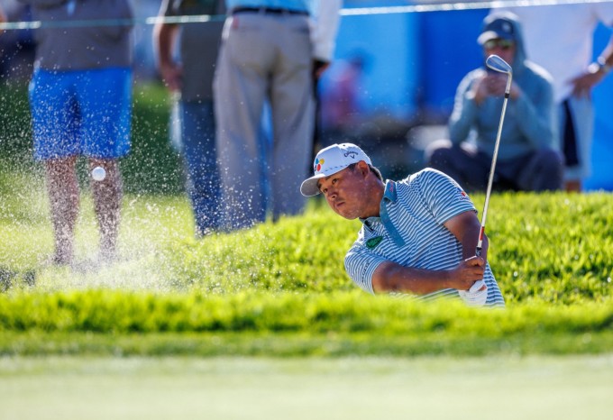 [토리 파인스 로이터=뉴스핌] 박상욱 기자=김시우가 1일 PGA 투어 파머스 인슈어런스 3라운드 1번홀에서 벙커샷을 하고 있다. 2026.2.1 psoq1337@newspim.com