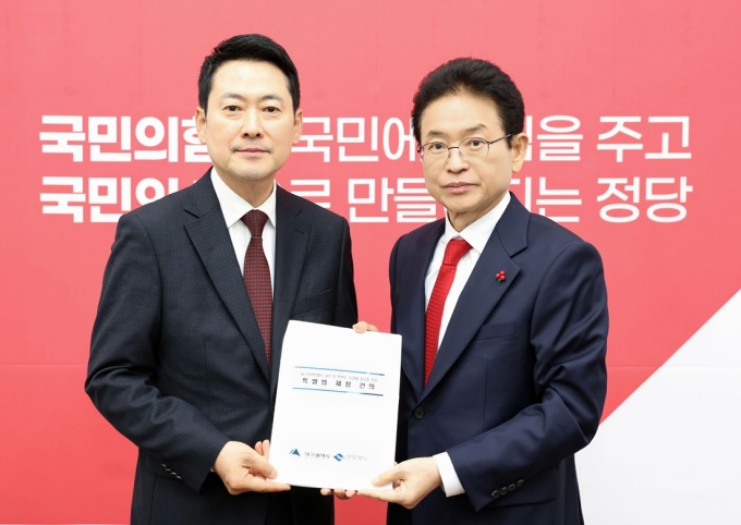 [안동·서울=뉴스핌] 남효선 기자= '경북대구행정통합'을 위한 특별법이 국회에서 발의되고 경북도와 대구시의 실무추진단이 본격적으로 활동에 들어가는 등 'TK행정통합' 추진에 속도가 붙고 있는 가운데 이철우 경북지사가 장동혁 국민의힘 대표를 만나 '경북대구행정통합 특별법'의 조속한 제정과 국회 통과를 건의했다.