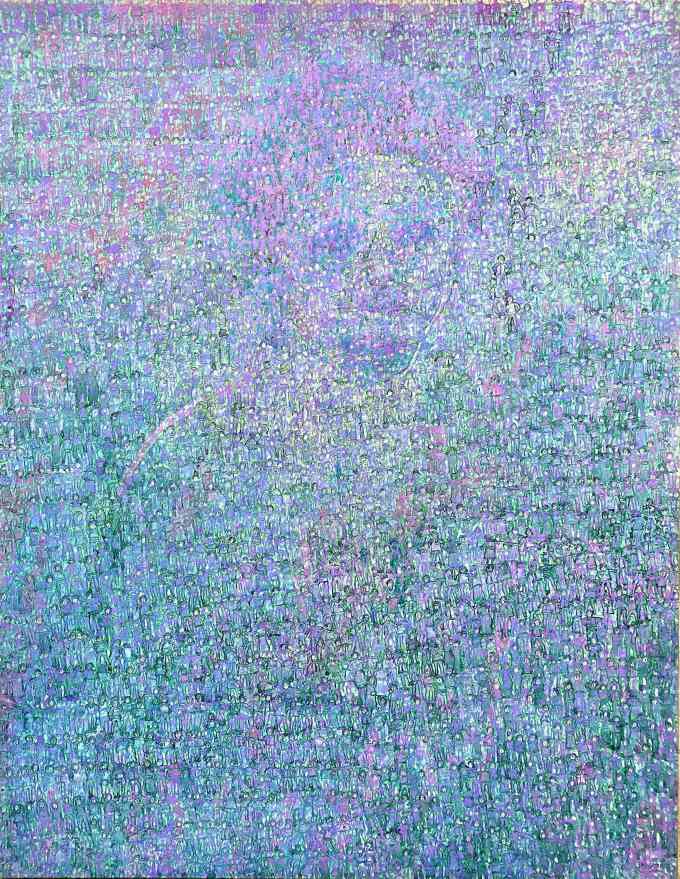 반복된 형상 속에서 우리는 시간의 층위를 읽게 되는데 청록과 보라, 자홍빛으로 물든 군중은 단순한 형상이 아니라 감정의 입자들이고, 침묵의 내러티브다. 희미한 중심의 형상들은 어쩌면 작가 자신, 혹은 그가 수없이 마주했던 또 다른 '나'일 것이다. 그들을 둘러싼 수많은 얼굴들은 잊힌 이들, 지나간 감정, 사랑의 퇴적물로서 작가의 내면을 조용히 투영하고 있다.