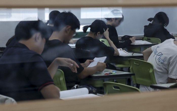 [서울=뉴스핌] 사진공동취재단 = 2026학년도 대학수학능력시험 6월 모의고사가 열린 4일 오전 서울 광진구 광남고등학교에서 3학년 학생들이 시험 준비를 하고 있다. 2025.06.04 photo@newspim.com
