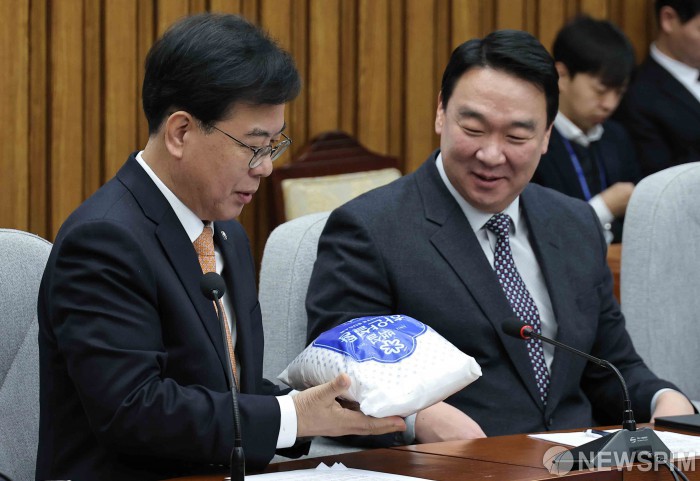 [서울=뉴스핌] 윤창빈 기자 = 송언석 국민의힘 원내대표, 정희용 사무총장이 8일 서울 여의도 국회에서 열린 원내대책회의에서 설탕을 바라보고 있다. 2026.02.03 pangbin@newspim.com