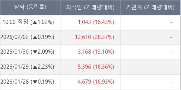 [표] 외국인ㆍ기관 순매매량 (단위 주)