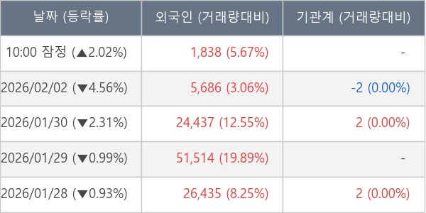 [표] 외국인ㆍ기관 순매매량 (단위 주)