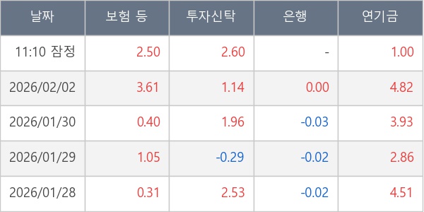 ※ 사모펀드 등 일부 기관의 순매매량은 표시되지 않음