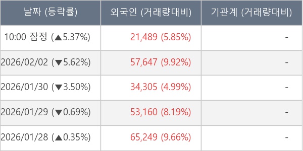 [표] 외국인ㆍ기관 순매매량 (단위 주)