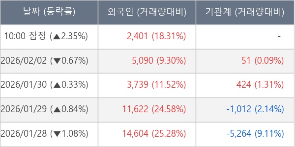 [표] 외국인ㆍ기관 순매매량 (단위 주)