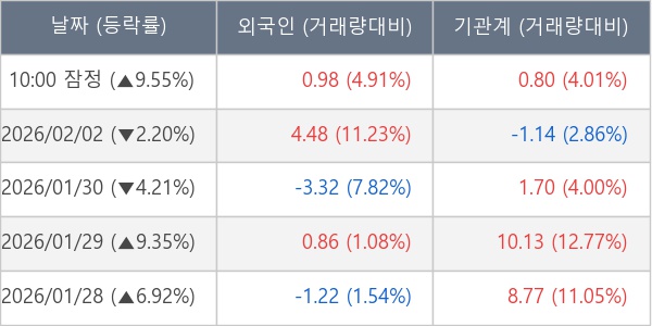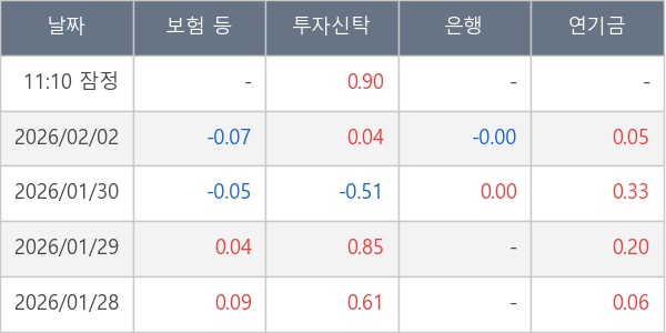 [표] 주요 기관별 순매매량 (단위 만주)