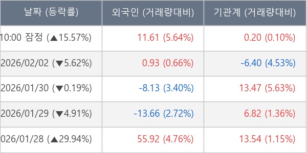 [표] 주요 기관별 순매매량 (단위 만주)