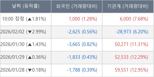 [표] 주요 기관별 순매매량 (단위 만주)