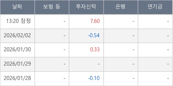 [표] 주요 기관별 순매매량 (단위 만주)