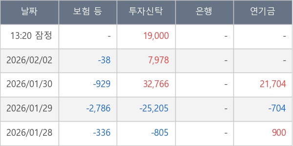 [표] 주요 기관별 순매매량 (단위 주)