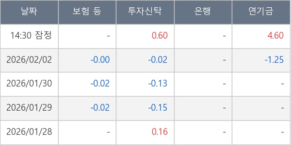 [표] 주요 기관별 순매매량 (단위 주)