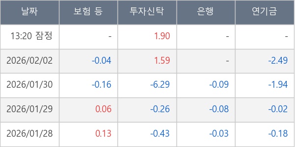 [표] 주요 기관별 순매매량 (단위 만주)
