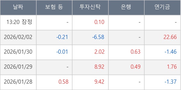 [표] 주요 기관별 순매매량 (단위 만주)