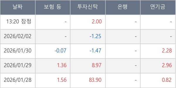[표] 주요 기관별 순매매량 (단위 만주)