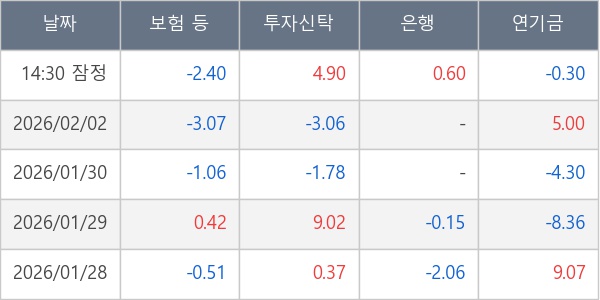 [표] 주요 기관별 순매매량 (단위 만주)