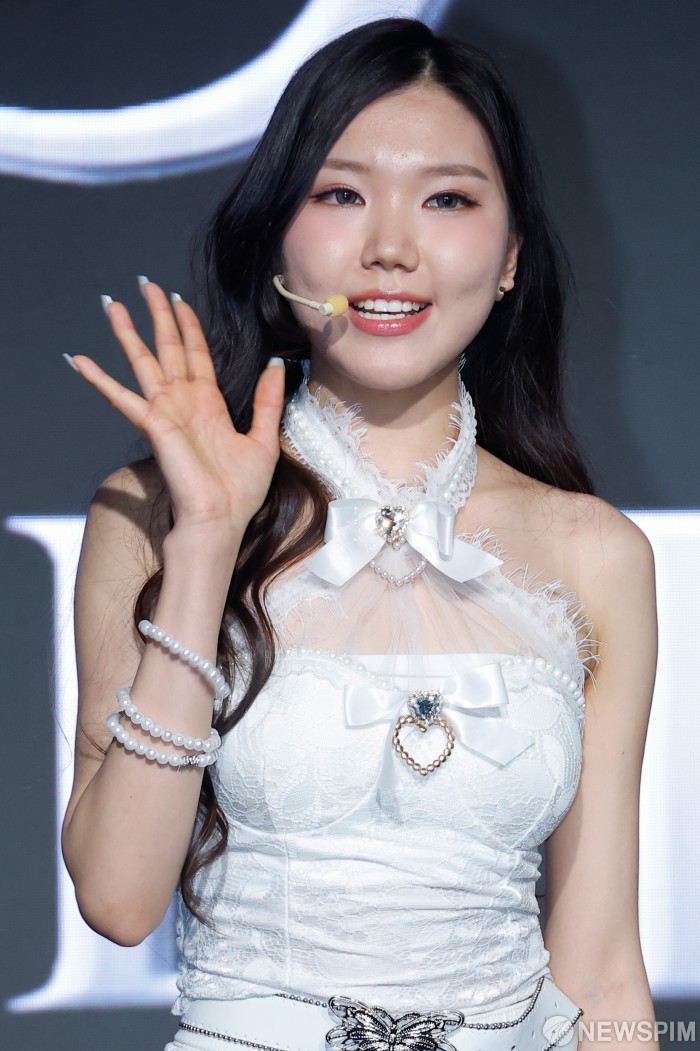 [서울=뉴스핌] 류기찬 기자 = 신인 걸그룹 나빌레라 멤버 멜로디가 3일 오후 서울 마포구 동양북스빌딩에서 열린 데뷔 기념 쇼케이스에서 인사말을 하고 있다. 2026.02.03 ryuchan0925@newspim.com