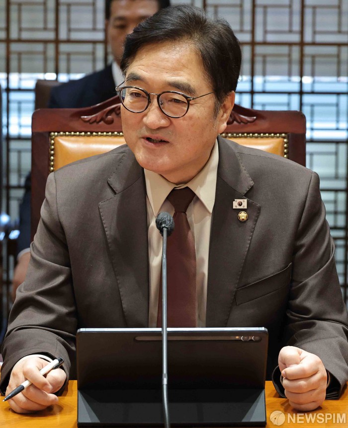 [서울=뉴스핌] 윤창빈 기자 = 우원식 국회의장이 8일 서울 여의도 국회에서 열린 국회 기후특위 공론화위원회 출범 및 1차 회의에서 모두발언을 하고 있다. 2026.02.03 pangbin@newspim.com